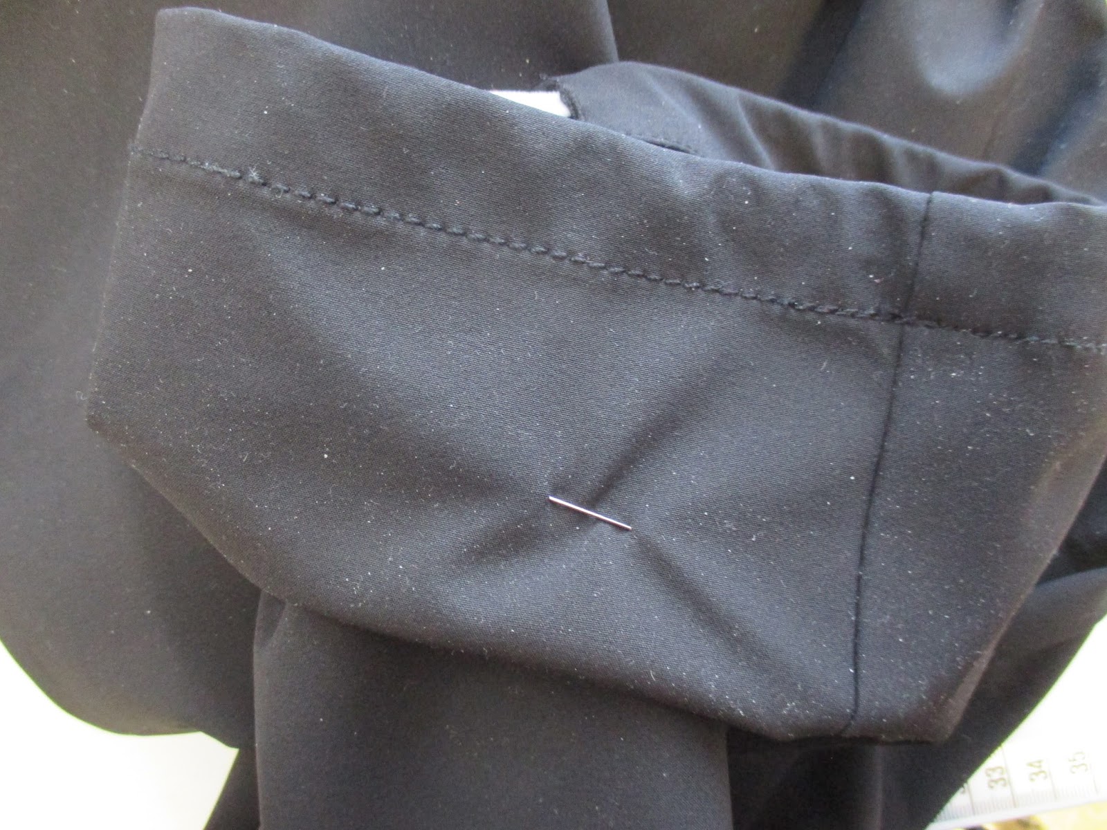 Tällä kertaa kokeilin erilaista lyhentämistä. Ajattelin, että pääsen tällä systeemillä vähemmällä, kun ei tarvitse kuminauhakujaa siirtää uuteen pituuteen. En ole ihan varma. Mutta näin se menee: