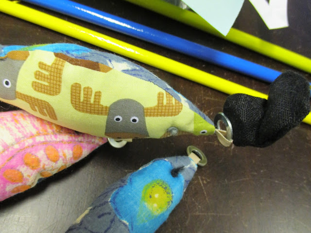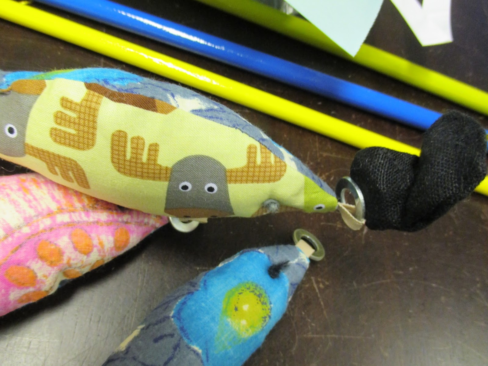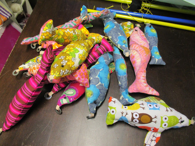 Sain tilauksen paikalliselta museolta. Sopivasti sain sen delegoitua Veeran harjoittelutyöksi. Hän suunnitteli, kaavoitti, leikkasi ja ompeli kalat. Idea ei ole meidän, vaan museon väki oli löytänyt ohjeetkin näiden tekemiseen. Teimme tietysti omanlaisemme.