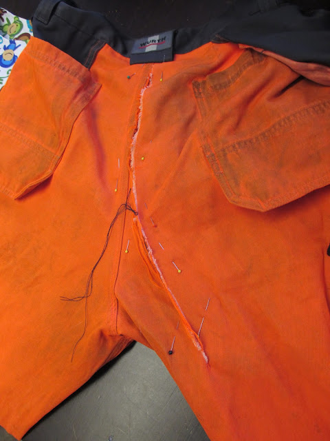Ennen kuin aloin itse korjata asiakkaiden vaatteita, katselin muiden hinnastoja ja hymähtelin, kun lopuksi luki että otetaan vain puhdasta korjattavaa. Ompa hienohipiäistä…. Mutta. Kun muutaman kerran ottaa vastaan työn, joka haisee likaiselta ja sormet on missälie tahmassa, alkaa ymmärtää. Nämä housut olivat juuri pesusta tulleet ja sikälikin mukavat käsitellä.