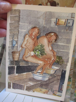 Talvella ostin lopettavasta liikkeestä laatikollisen kortteja. Silloin ne eivät tuntuneet ajankohtaisilta ja jäivät piiloon. Onneksi tulivat nyt siivouksessa vastaan ja nostettiin tietysti esille. Nättejä kuin mitkä.