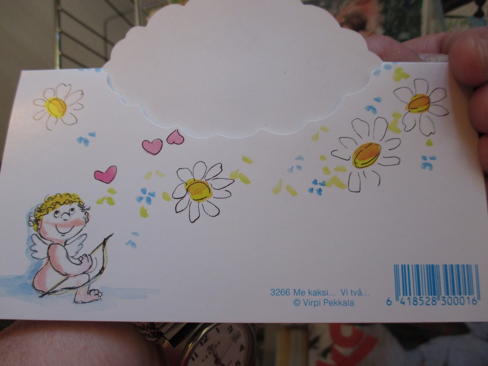 Ja takasivulla jatkuu etusivun teema. Avattuna kortti on tällainen: