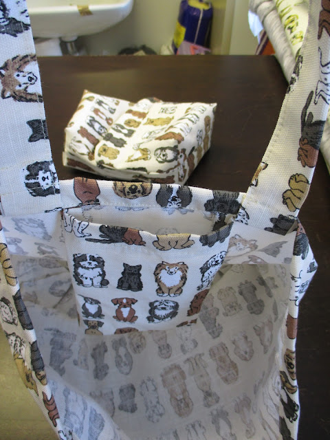 Jos kerran kissaihmisille, niin tietysti myös koiraihmisille. Pussukoita ja kasseja. Pussukoissa on vetoketju ja vuori. Kassi on vuoriton, siinä on pieni sisätasku ja hakanen vaikkapa avainten säilyttämistä varten.