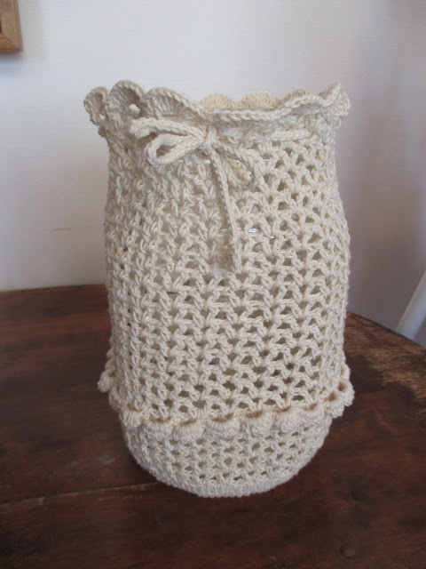 Tällainen käsityö on mukava viedä vaikkapa mökkituliaisiksi. Ehkä täytettynä herkullisella syötävällä tai jollain muulla ”häviävällä” tavaralla. Pelkkää pussia voi käyttää myös sipuli-, tomaatti- tai omppupussina.
