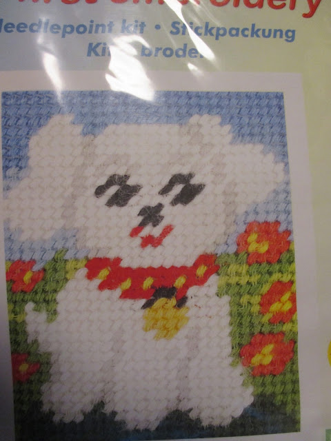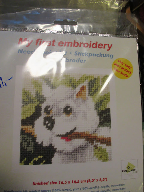 Nämä pienet paketit ovat ihan parasta. Tähän on koottu pohja, johon kuvio on selvästi väritetty, tarvittavat langat ja vielä neulakin. Näin ollen mitään ei tarvitse kotona etsiä.