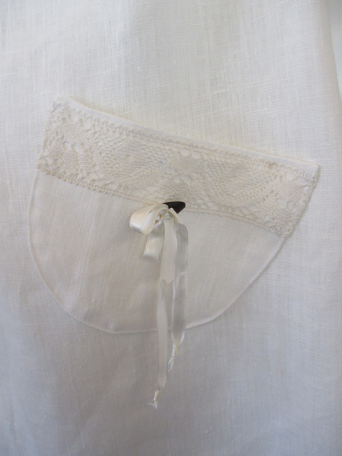 Valkoinen tunika muotolaskoksilla, pitsitaskut |