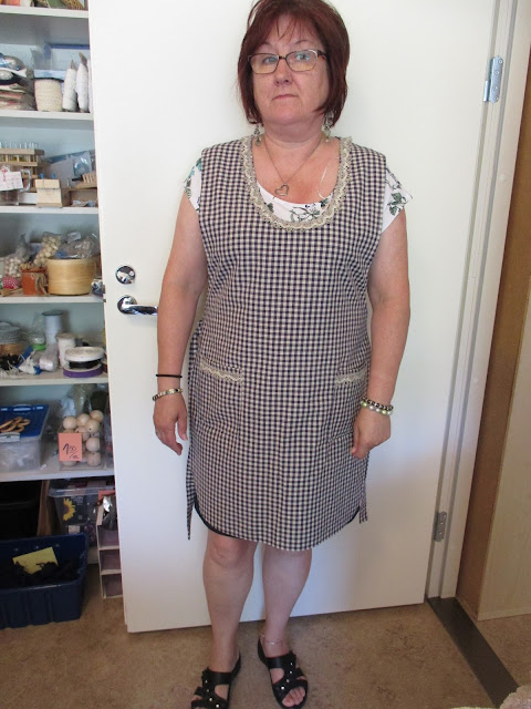 Tämä essu on ompelija-Arjalle tismalleen sopiva ja ”istuu kuin pörö suojalumessa”, kuten äitini tapasi sanoa.