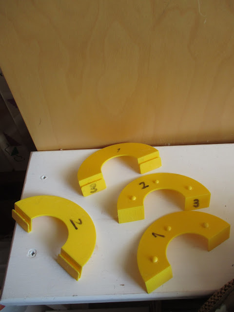 Eipä siinä kauan mennyt, kun ongelma ratkesi. Keksin oivan keinon, miten mekin osaamme tuota laitetta myöhemmin käyttää: merkitsimme jokaisen osan numerolla. Kun samat numerot asetetaan vastakkain homma pelittää! Eräs asiakas osti tällaisen laitteen ja minä kerroin, miten me sitä käytämme, joten hänkin halusi omaansa merkittävän samanlaiset numerot!