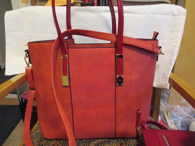 Harvoin käytän myöskään isoja käsilaukkuja, mutta jostain syystä niitä on kuitenkin ilmaantunut. Tässä punainen.