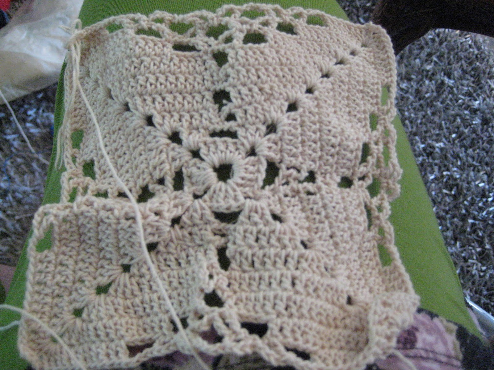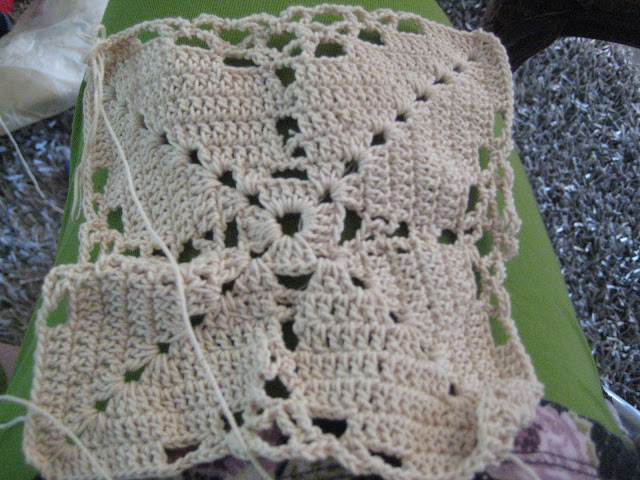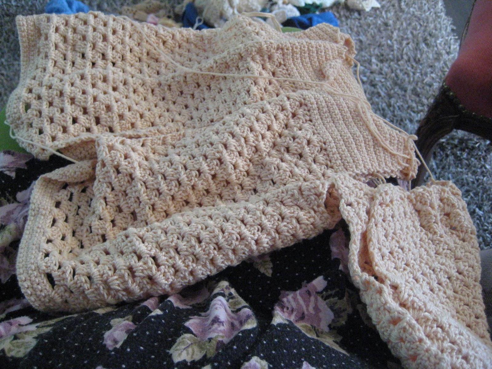 Löytyi myös tällainen keskeneräinen vauvan virkattu nuttu. Palat on valmiit, mutta se ikävin vaihe tekemättä eli yhdistäminen. Aika paksun langan olen valinnut.
