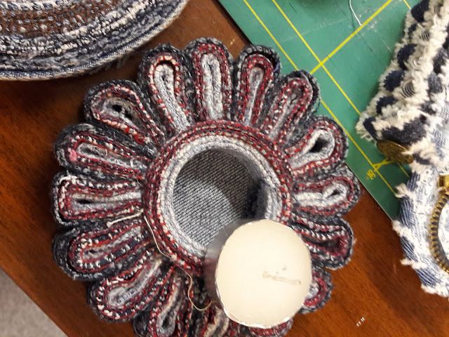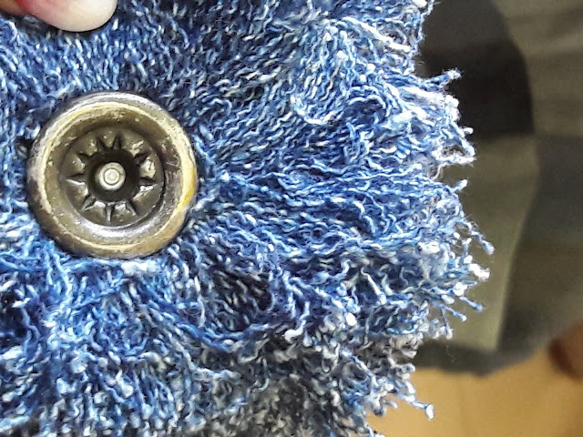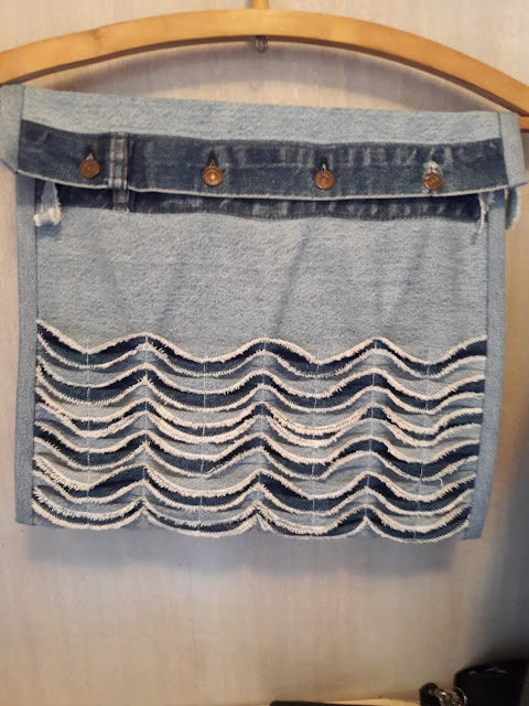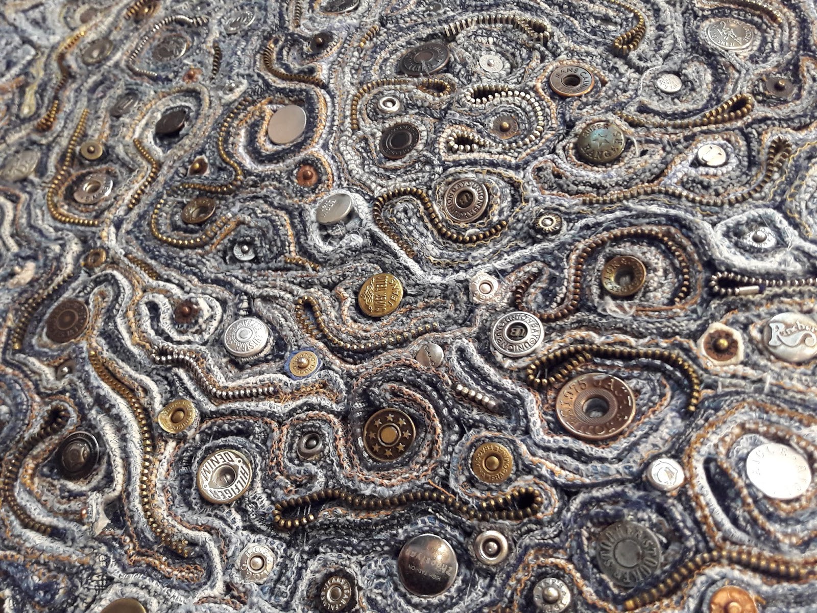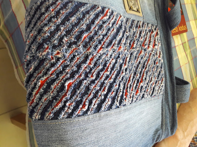 Chenille-tekniikalla oli tehty paljon erilaisia ja erinäköisiä pintoja. Farkku käyttäytyy erilailla kuin trikoo.