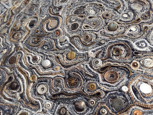 Seinävaatteet oli tehty ihan mielettömällä pikkutarkkuudella, upeilla väreillä ja kekseliäisyydellä. Harmi vaan, etten päässyt kuvaamaan lähempää. Eli kuvissa on mukana edessä istuvan pää.