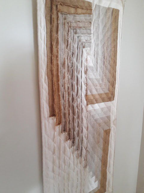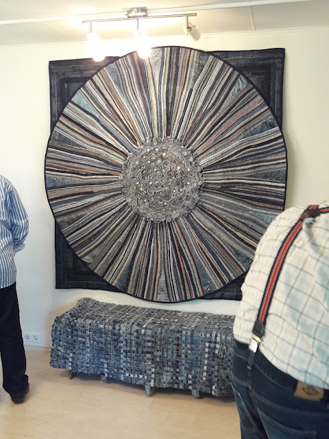 Porukassamme oli toki käsityöihmisiä, mutta paljon myös heitä, joita asia ei lähtökohtaisesti kiinnosta. Marja Matiisenin kerronta oli kuitenkin niin erinomaisen mielenkiintoista, että siitä nautti varmasti jokainen. Hän esitteli paljon töitänsä, ensin eri tekniikoilla valmistettuja farkkukasseja ja sitten tilkkutäkkejä ja seinävaatteita. Pienestä tilkunpalasesta hän loihti eteemme kertomuksen sukunsa historiasta tyyliin ”tämä punainen tilkku on veljeni polvihousuista. Muistan kuinka hänen kanssaan…” Saimme kuulla Viron historian ikävistä muistoista; kyydityksistä, ikävästä, pelosta, mutta myös uskomattomia selviytymistarinoita.