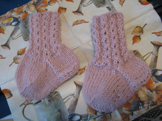 Ja viimeisenä oikein söpöt vauvasukat alpakkalankakerän lopusta.
