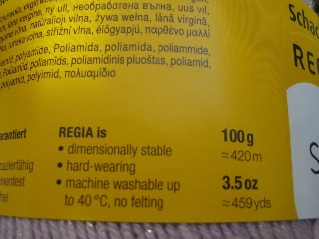 Se on vaaleanpunainen, mutta jossain valossa näyttää hiukan lilaltakin. Olisi oikein ihana väripari harmaan kanssa, tykkään! Lanka on Fingering-paksuista ( 100 gr = 420 m) ja siinä on 70 % villaa ja 30 % polyamidia. Kestää kulutusta ja konepesun 40 asteessa.