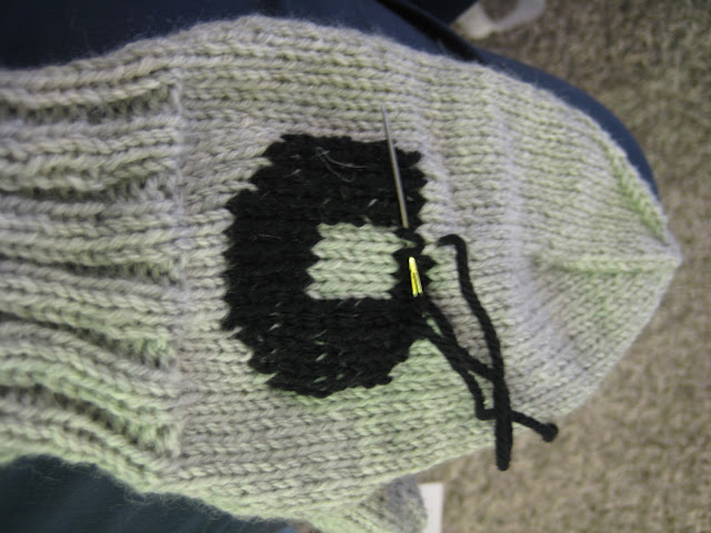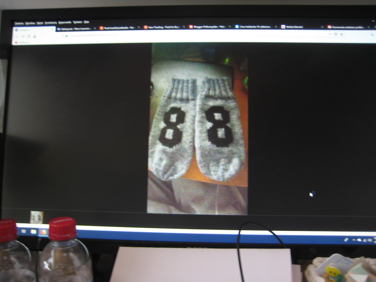 Tässä tilaustyössä oli kyllä haasteensa. Ohjetta ei ollut, enkä ole kirjoneuleen tekijä ensinkään. Koska kuvio tulisi vain lapasen toselle puolelle, päätin tehdä sen jälkikäteen silmukoimalla.
