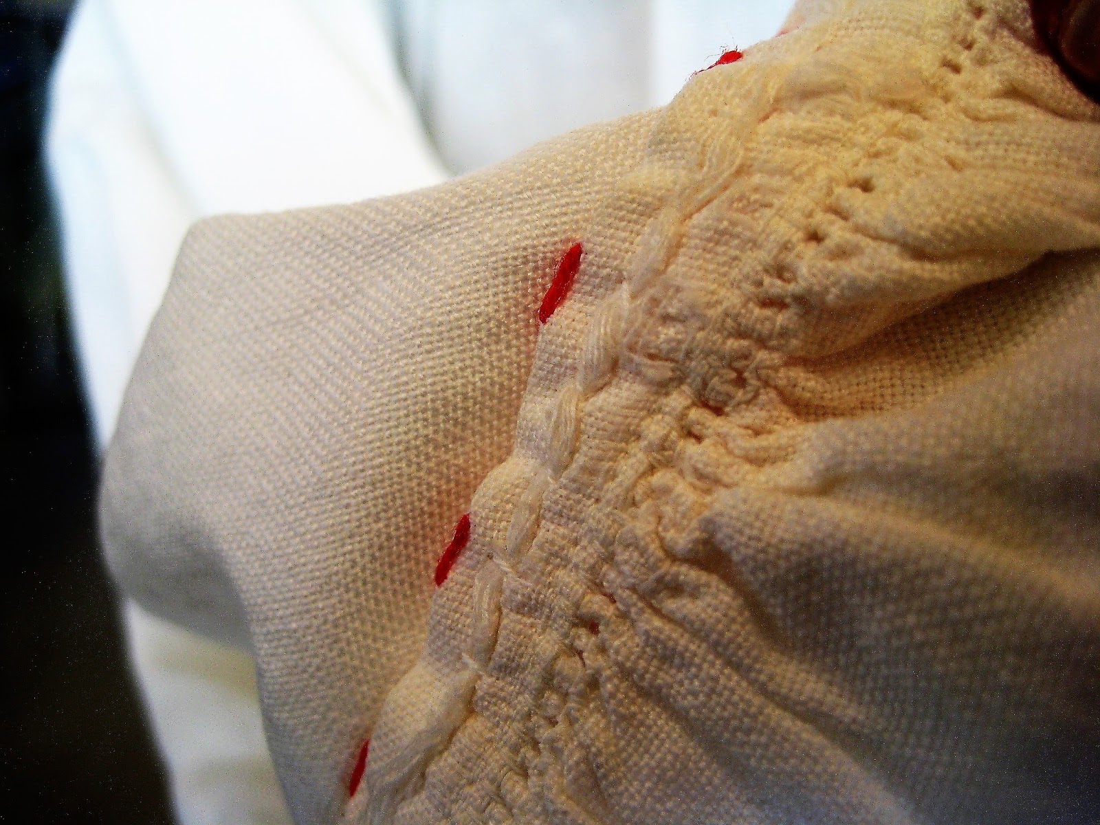 Tottakai silmiini osuu kaikki käsitöihin viittaava ja tämä oli kiinnostava – sain ostaa sen aivan pilkkahinnalla. Ehkä sitä joskus tarvitaan teatterissa, tai sitten puku on vaan somistuksena käsityöpuodissani.