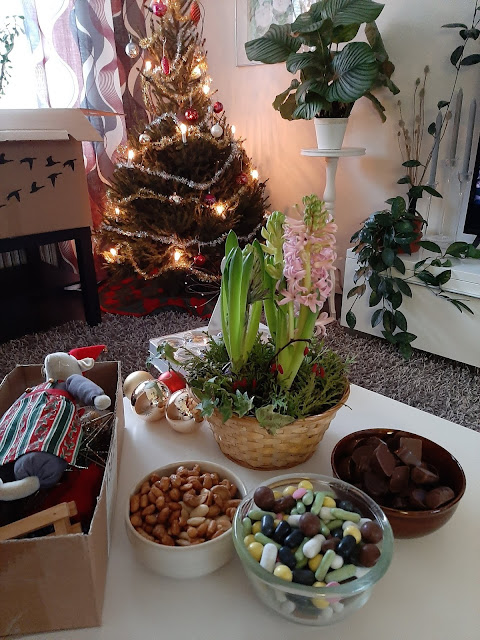 Nyt oli jo toinen joulu, kun sovimme, ettemme lahjoja vaihda. Niin helpottavaa. Saan tarpeekseni lahjahössötystä putiikin puolella, kun yritän ratkoa epätoivoisten asiakkaiden lahjavalintoja. Toki se on iloistakin työtä, kun onnistuu saamaan helpotuksen huokauksen asiakkaan suusta ongelmien ratkettua!