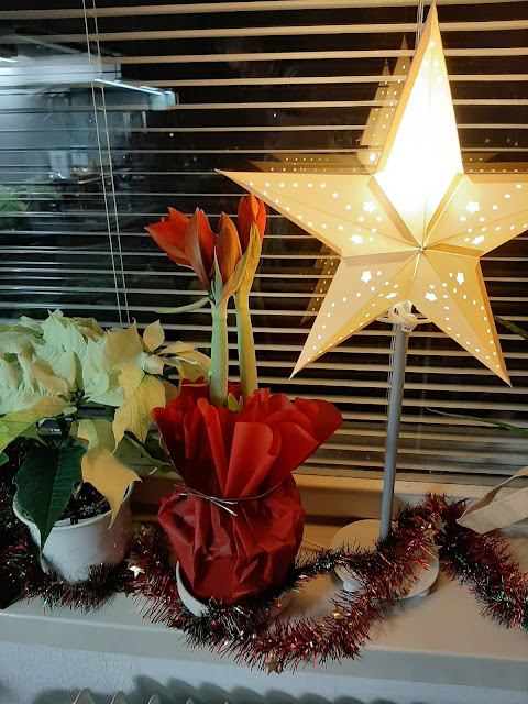 Meillä nautitaan joulusta ja joulukoristeista vielä pitkään. Nuutinpäivänä aletaan riisua kuusta, mutta vasta aattonahan se sisälle tuotiinkin. Muuten, ei tuo kuusikaan tuoksu! Vai onko vika sittenkin mun nenässä?