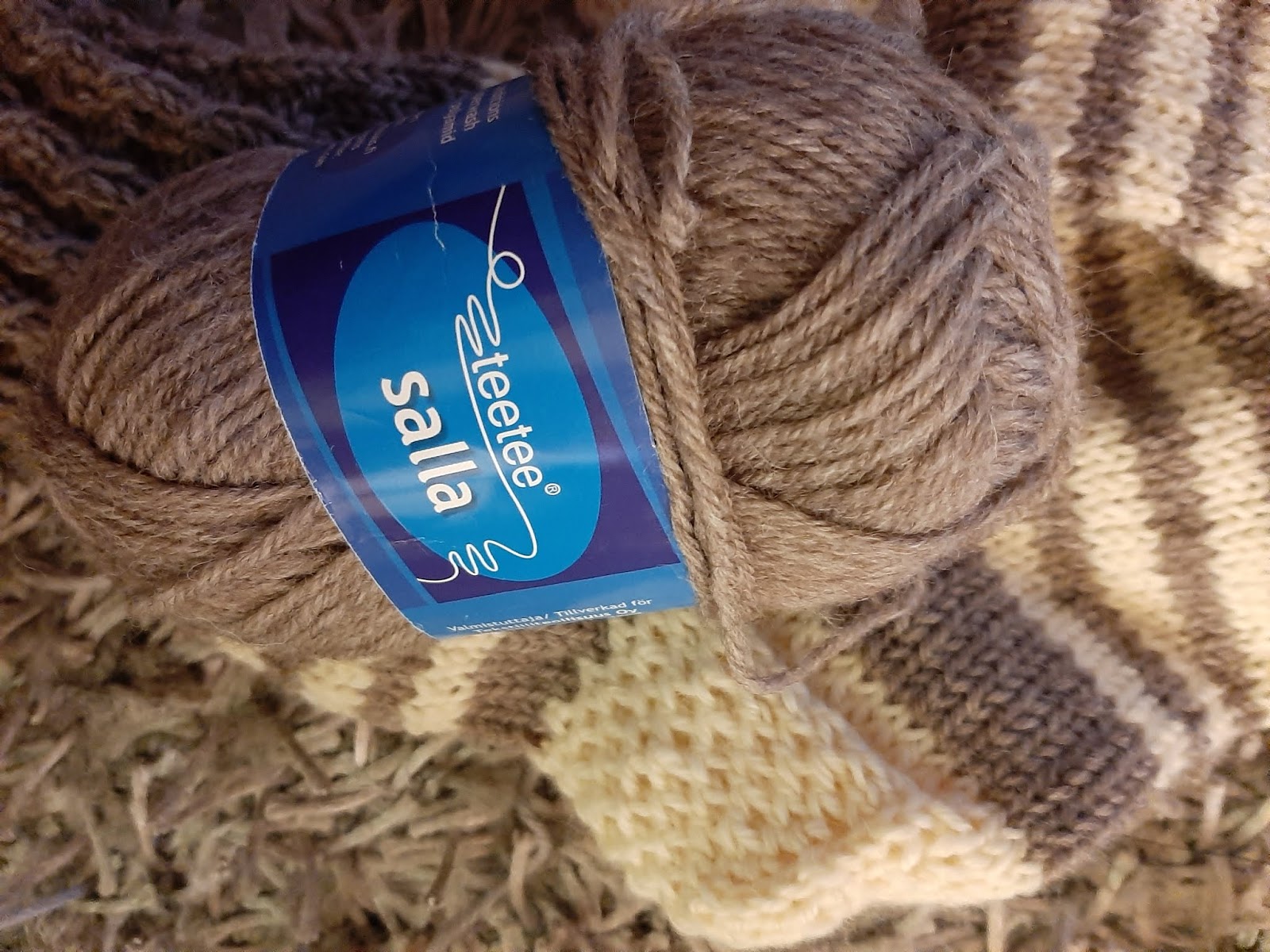 Lanka on Teeteen Sallaa. (Tiedoksi niille, jotka käyttävät Novitan lankoja – tämä on paksuudeltaan kuin 7 Veljestä). Hiukan poikkeuksellisia ovat nämä Teeteen Salla ja Pallas, sillä niissä on enemmän villaa, 80 % villaa ja 20 % polyamidia. 50 grammaa = 100 metriä tässä Sallassa.