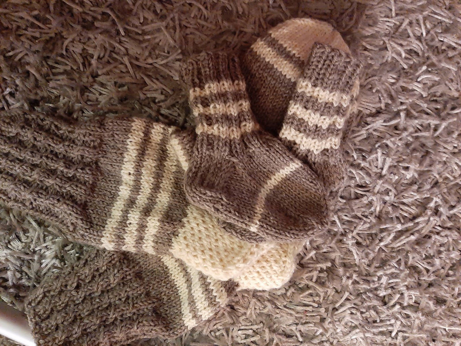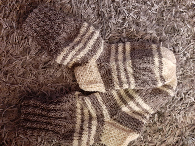 Välillä tulee sitten olo, että nyt haluan äkkiä valmista! Ja onhan se ihan toista neuloa paksua lankaa. Niillekkin sukille löytyy käyttäjänsä; saapassukkina ja kotisukkina.