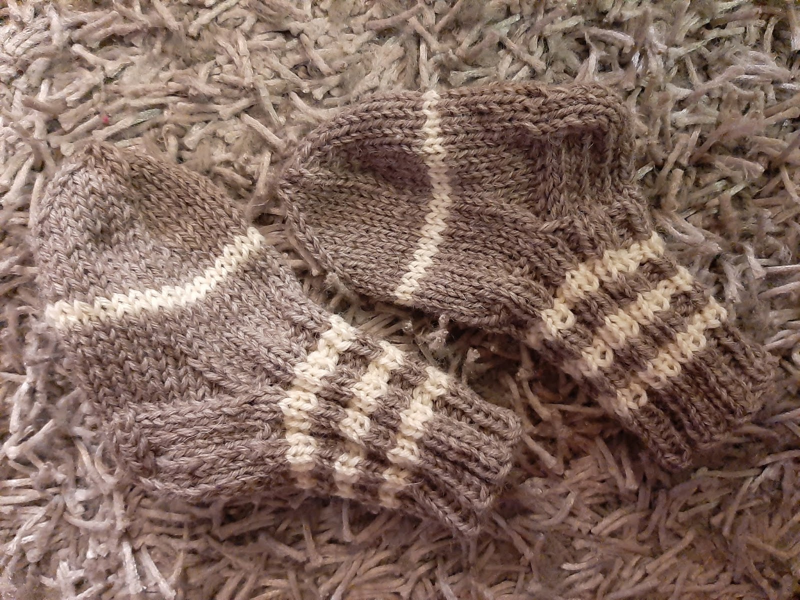 Seuraavaksi minulta oli sitten jäämässä nyttyrä lankaa. Päätin tehdä senkin pois ja aloitin pienet vauvasukat. Ja siinäpä sitä onkin jännittämistä, että tekee juuri sopivat langan määrään nähden. Minä onnistuin!