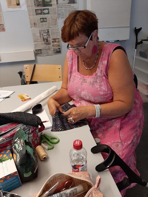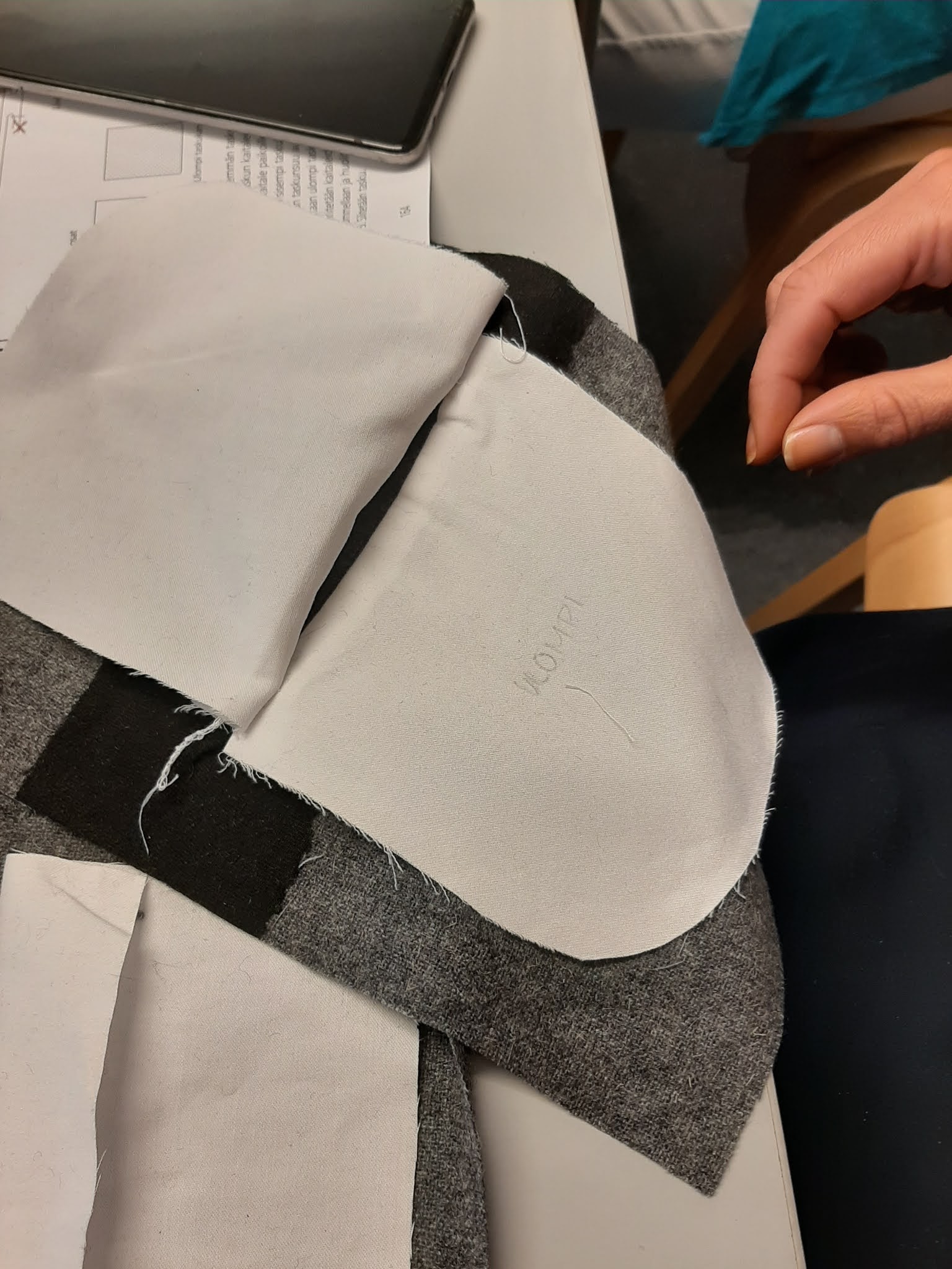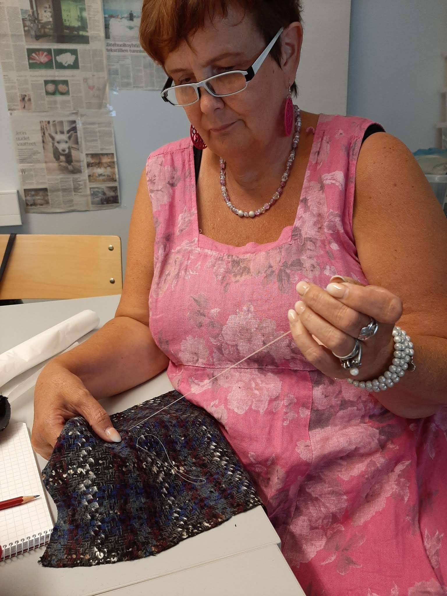 Jouluna valmistumme mittatilausompelijoiksi. Syksyn ajan teemme vuorillisia takkeja: yhden itselle, toisen asiakkaalle ja kolmannen näyttötyönä asiakkaalle. Heti ensimmäisellä tunnilla aloitimme harjoittelun. Ompelemme yksityiskohtia. Tällä kertaa taskuja. Ensi näkemällä en millään meinannut hahmottaa työjärjestystä, mutta osa ja ommel kerrallaan sain taskun tehtyä. Jos olenkin johonkin vaatteeseen taskun laittanut, yleensä valitsen paikkataskun sen helppouden takia, mutta nyt syksyn mittaan on pakko harjoitella myös näitä vaativampiakin.