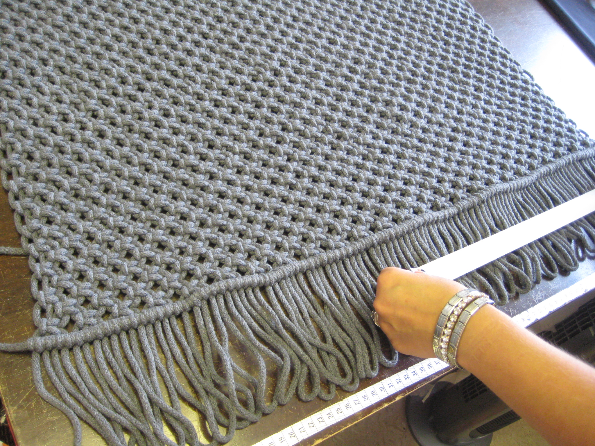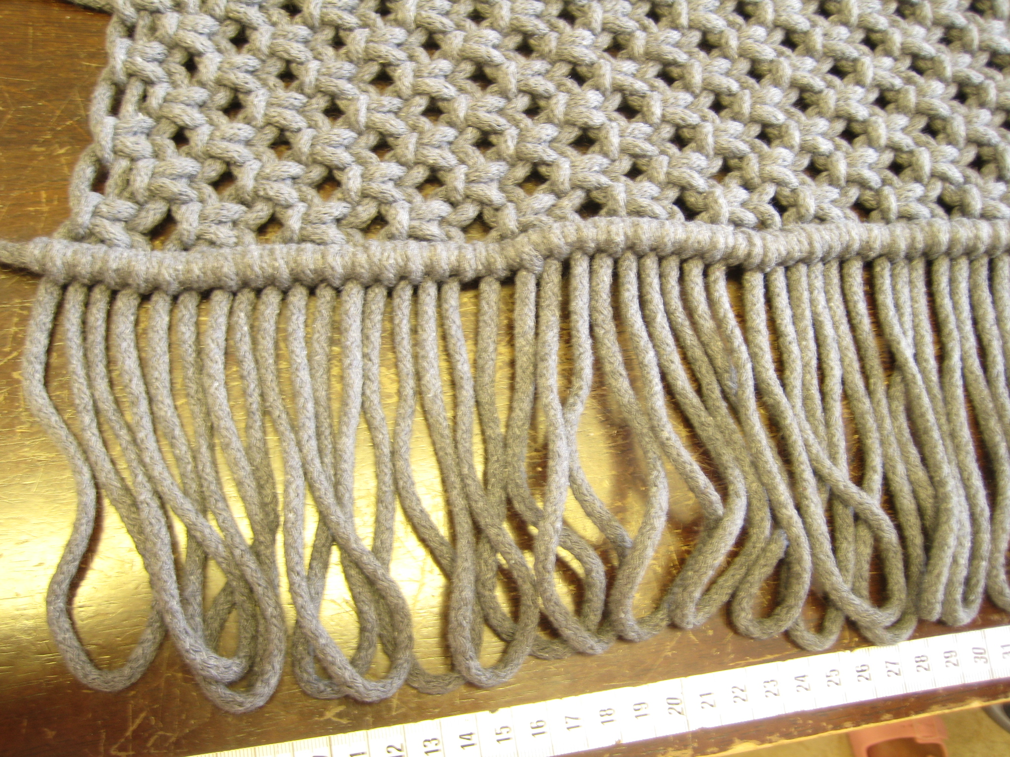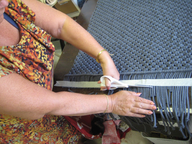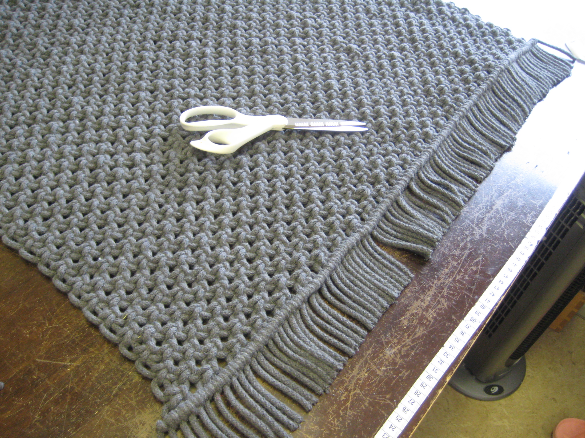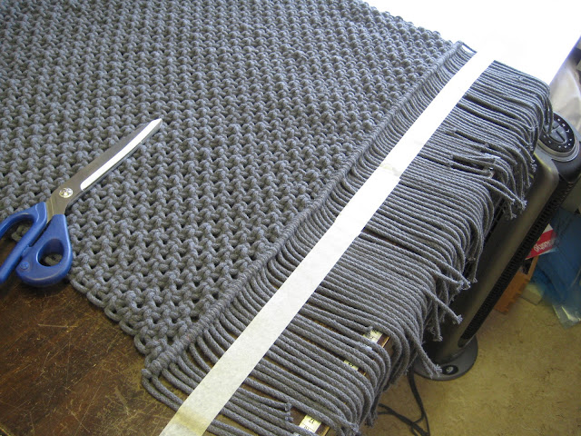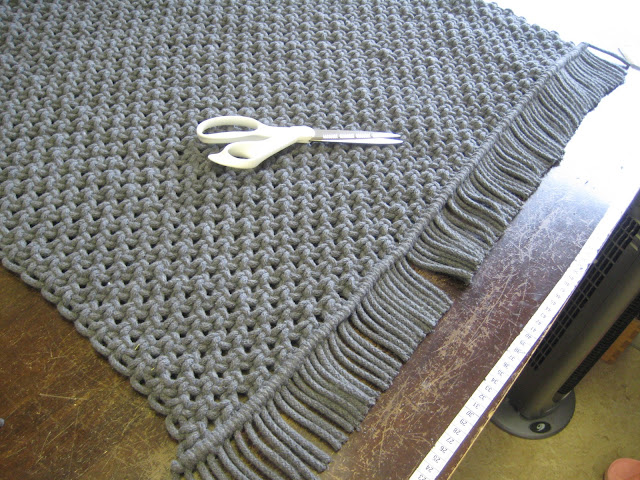 Olisin halunnut hiukan pidemmät hapsut, mutta piti leikata lyhyimmän mukaan. Ja joukossa oli muutama tosi lyhyt, koska olin solminut mahdollisimman pitkän maton!