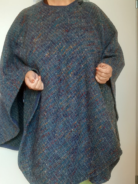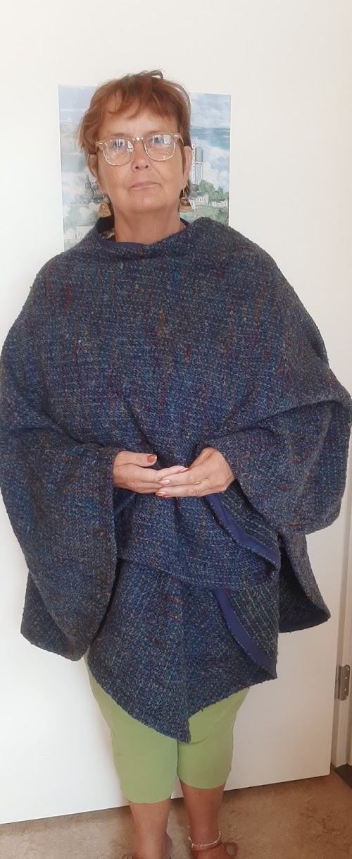 Nyttemmin sivun toiminta on ollut hiljaista, kunnes tällä viikolla tuli innokas kysely. Sattumoisin kaapistani löytyi kyselijälle mieluinen kangas ja niin Arja-ompelijani surautti viitan, josta tulikin oikein kaunis syysvaate.