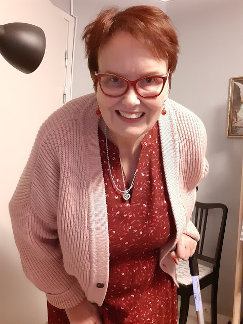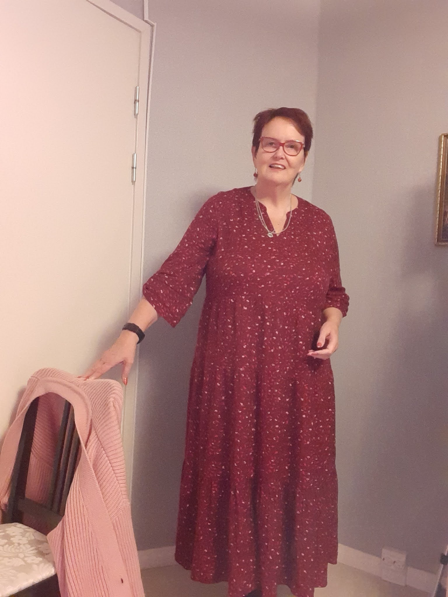 Kävi sitten niin, että yht’aikaa oli asiakkaana nuori nainen ja vanhempi rouva. Yhteen ääneen kehuivat mun mekkoa. Minä tietysti selittämään, että vähän liian pitkä. Että kuinka paljon pitäisi lyhentää?