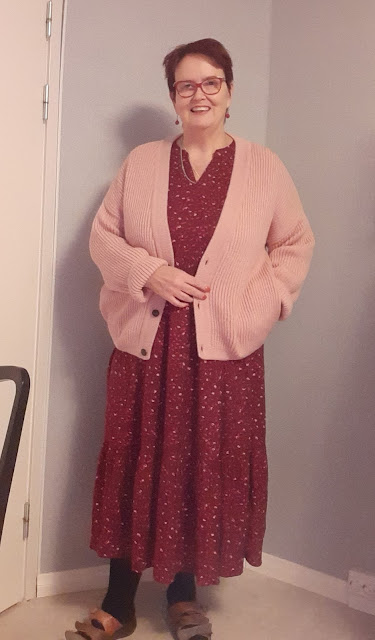 Päätin sitten olla putiikissa jouluisessa asussa ja valitsin tämän mekon ylleni. Olen tilannut sen Cellbesistä ja tykkään erityisesti tuosta kaula-aukosta ei kun siis pääntiestä! Mekko istuu yläosastaan oikein hyvin ja on frillojen ansiosta väljä helmastaan.