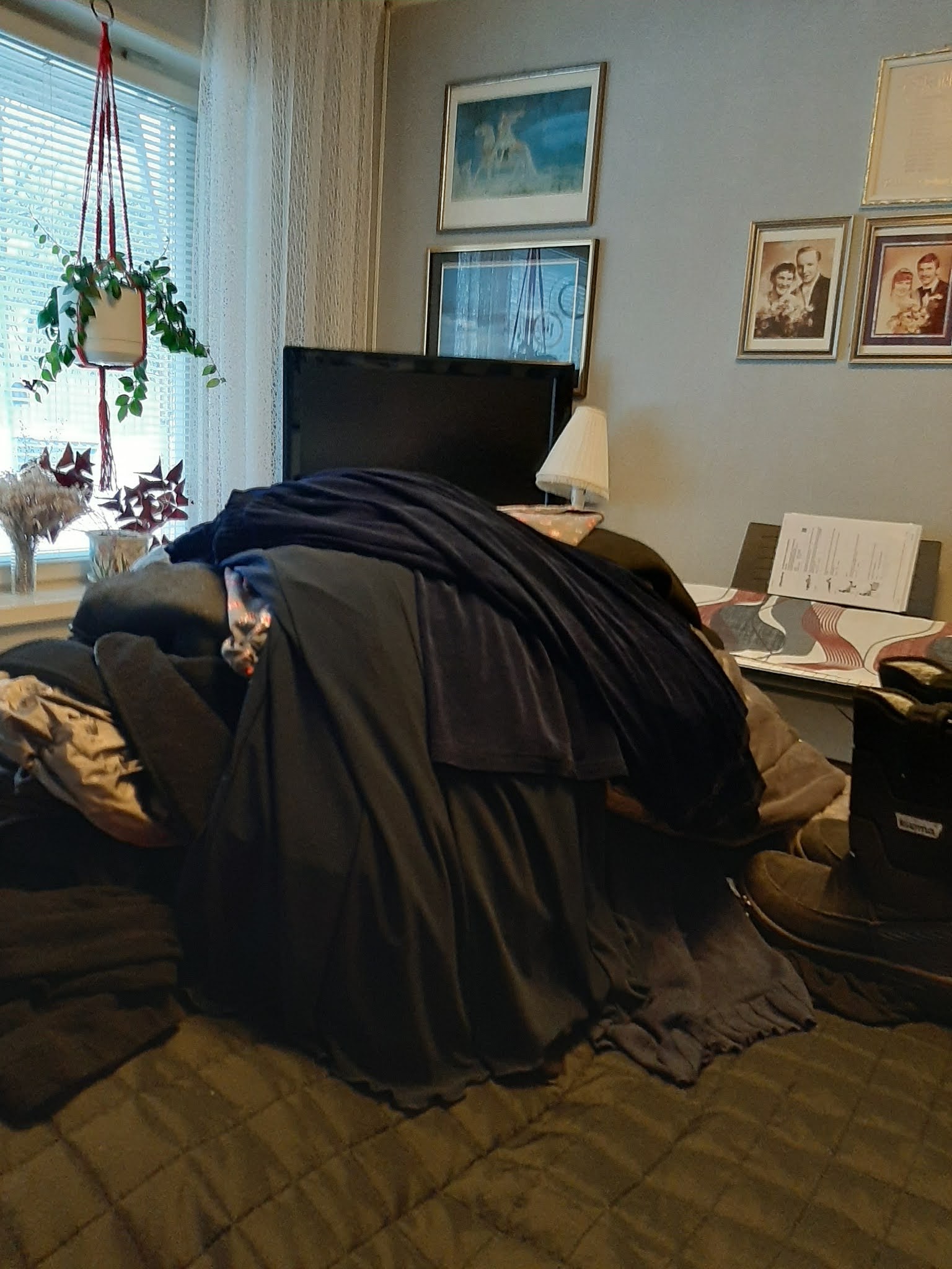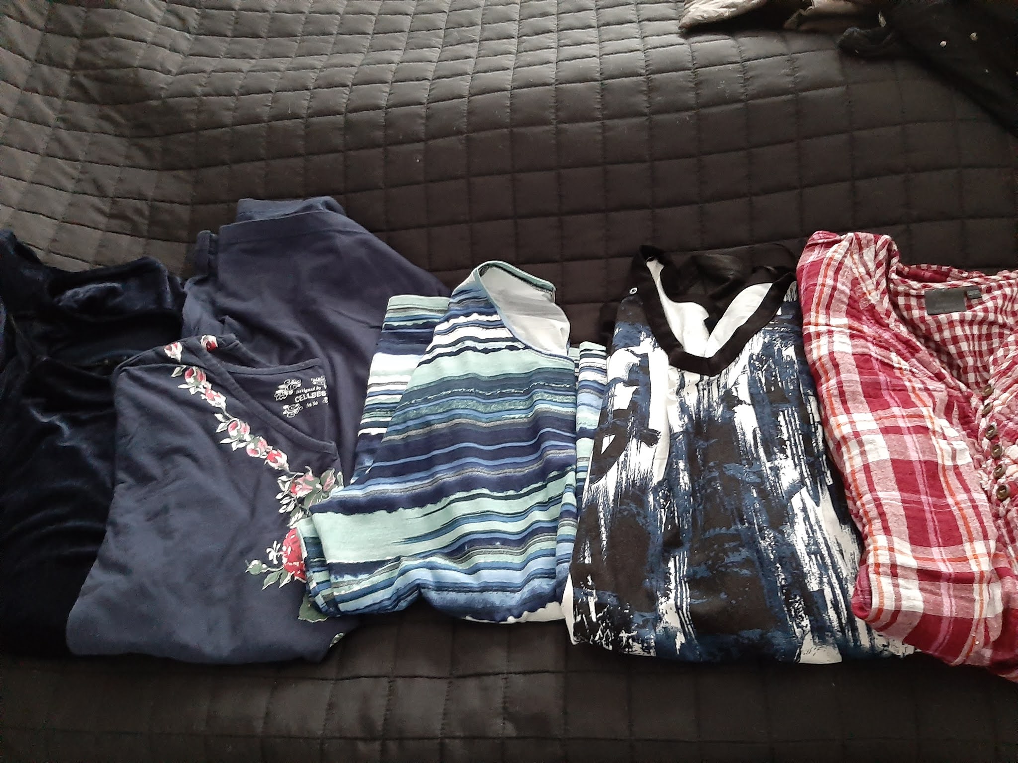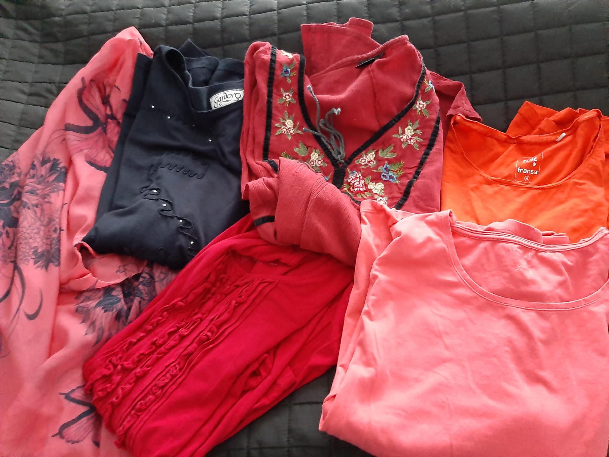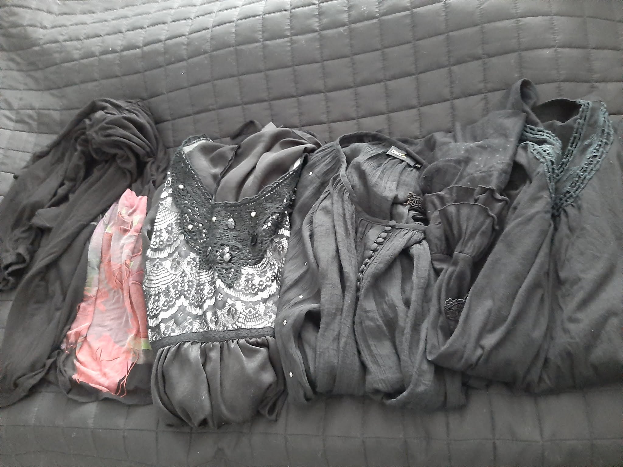 Kuvasin poistettavia vaatteita ryhmissä. Otin kuvat ylivalottaen, jotta mustatkin jotenkin erottuisi mustasta peitteestä. Kaikki poistettavat vaatteet on mun kokoa 46 – 52. Jos joku kiinnostaa, laita viestiä, niin voin laittaa tarkempaa kuvaa ja muuta tietoa. mervi.lamminen@outlook.com tai 050 3283265