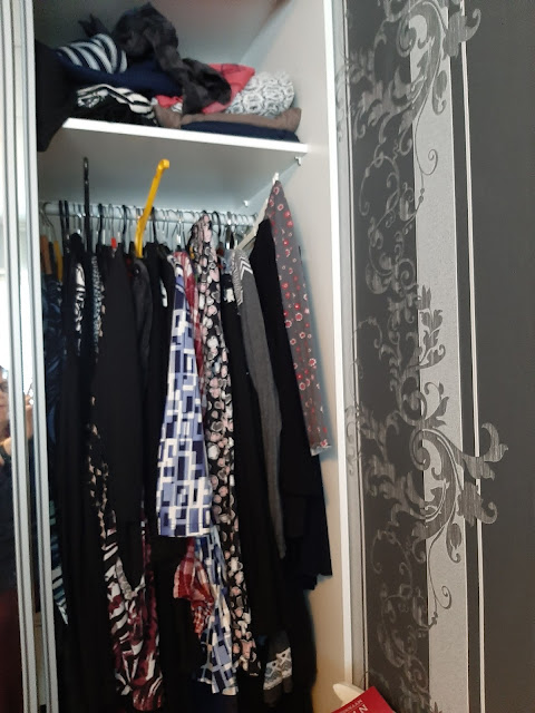 Meillä oli viime lähiopetusjaksolla (lue: teamsin välityksellä) pukeutumisneuvoja -koulutuksessa aiheena vaatekaappi-idea. Mikä tarkoittaa asukokonaisuuksien luomista muutaman vaatekappaleen avulla. Aivan uskomattomia variaatioita nähtiin opettajan tekeminä diasarjoina. Tähän liittyen saimme tietysti kotitehtäviä. Aloitin ison urakan sillä kurkistuksella omaan vaatekaappiin..