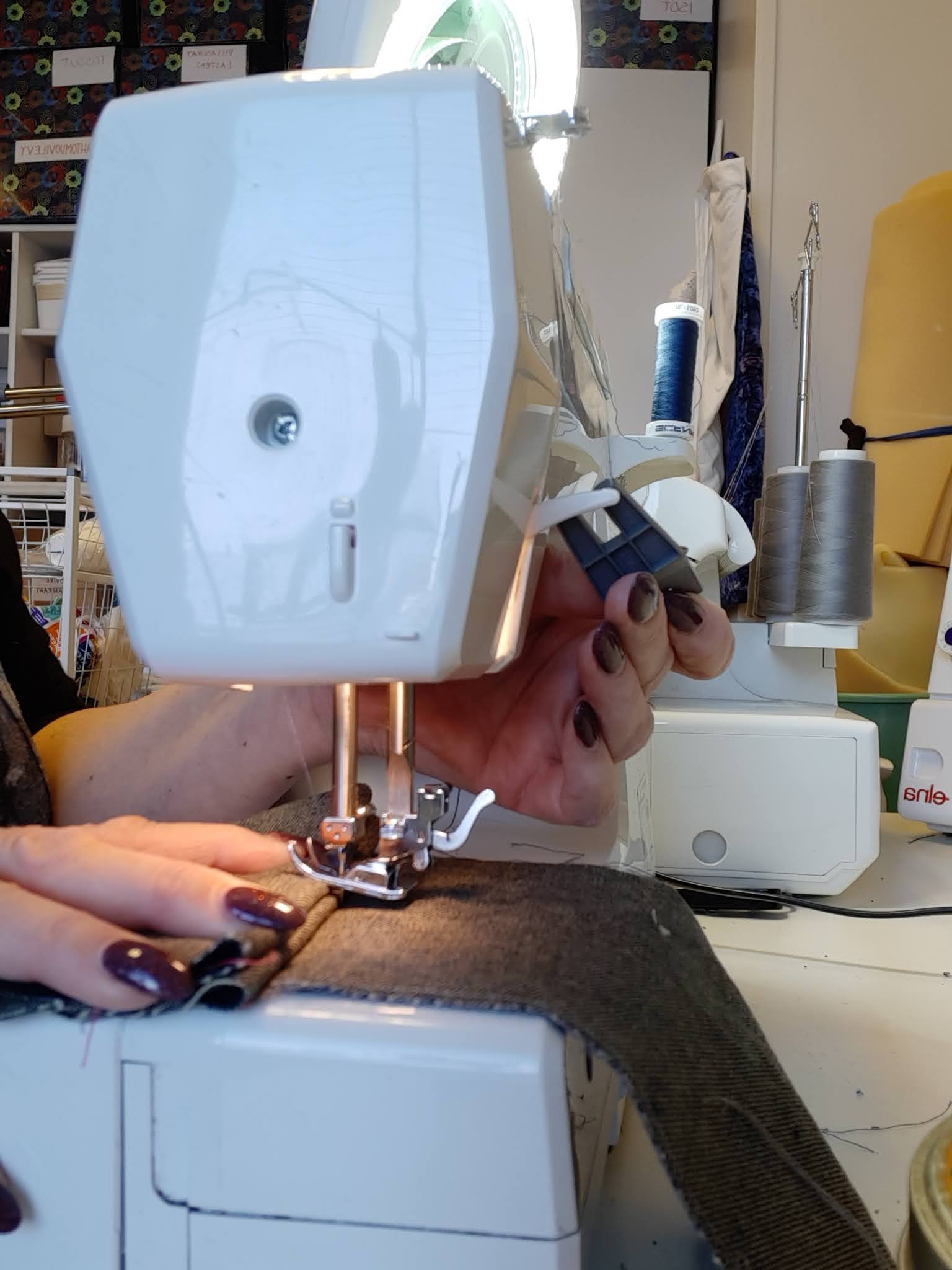 Silmiini osui jonkun ”kiinankaupan” mainos ompelun apuvälineestä, jolla pääsee paksun saumankohdan yli. Hämärä mielikuva, että mullakin saattaisi sellainen olla…