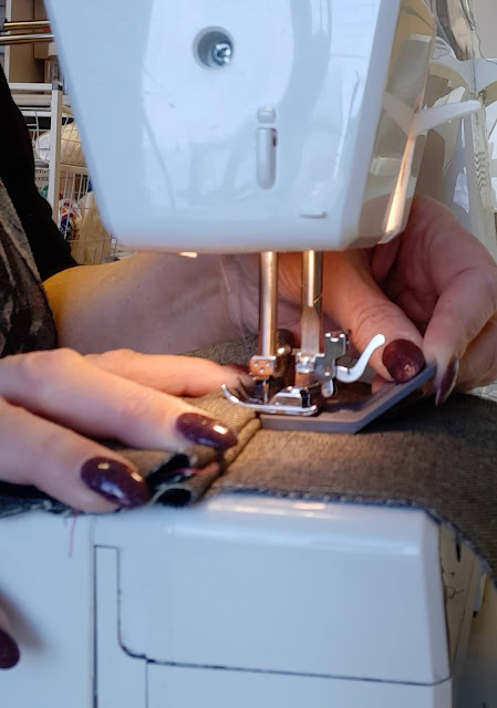 Tänään tuo muovinen haarukka tuli käyttöön: ompelin työtakkiin vetoketjua. Siinä oli hankala kohta, kun nepparit osui liian lähelle.