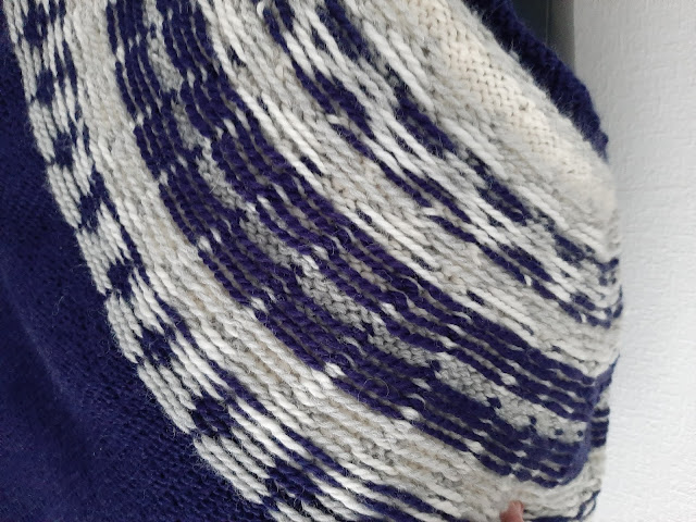 Vaikka olen tehnyt jo toisen tällä samalla ohjeella, olen yhtä jännittynyt, kun pääsen pääntielle. Kuinkahan kireä tästä tulee? Nyt halusin tehdä itseäni ajatellen vähän väljemmän pääntien ja sovelsin ohjetta. Ei siitä kuitenkaan kovin väljää tullut. Mutta kaunis kyllä, eikö vain?