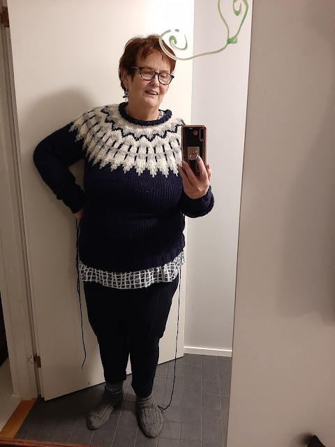 Ja huh! sitten ollaankin jo jännän äärellä, kun päästään tekemään kirjoneuletta…