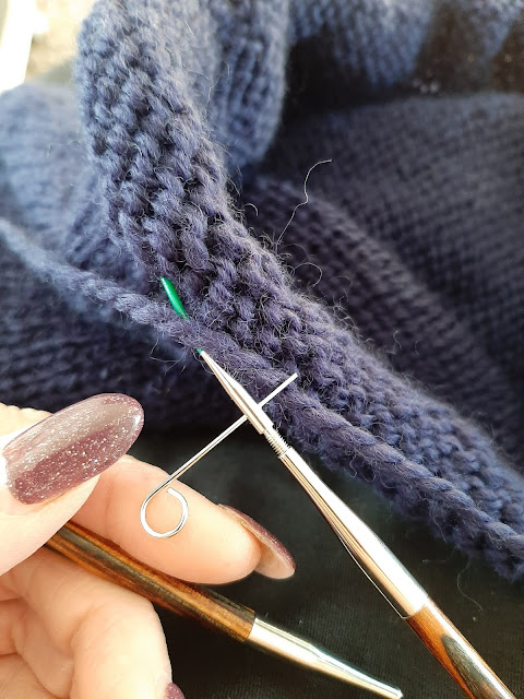 Kunnes sisuunnuin ja nyt on kolmas paita tuloillaan. Tässä haastoin itseni myös uuteen tekniikkaan, kun opettelin looppaamaan. Magic loop -tekniikassa neulotaan pitkällä pyöröpuikoilla esim. pientä hihan suuta.