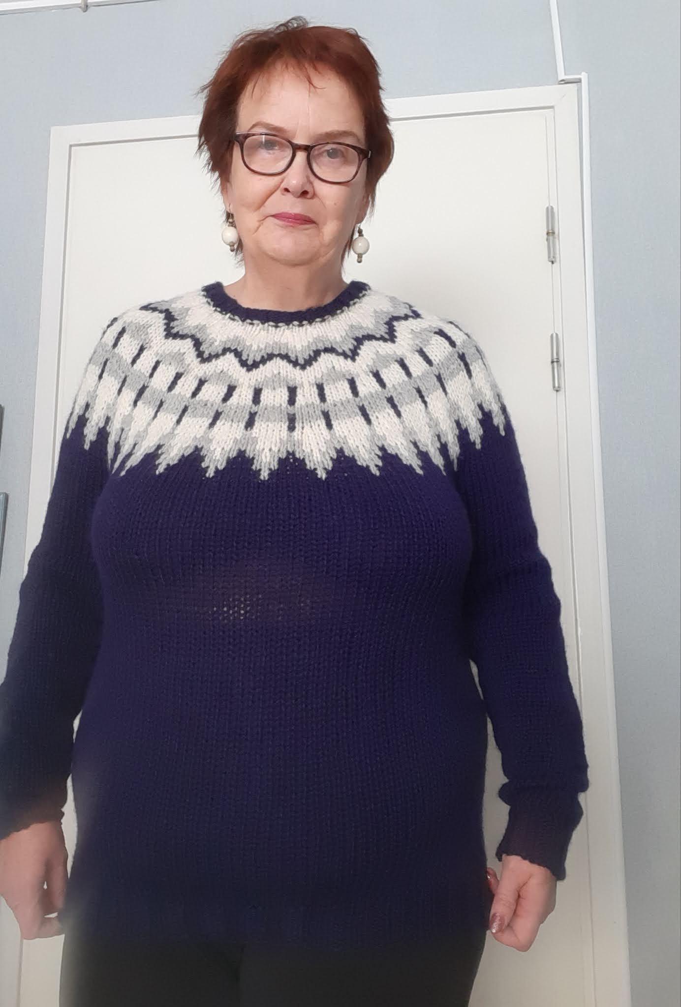 Tämä pusero on kyllä niin just mun kokoinen, tai jollekulle toiselle xxl -kokoiselle, joka tykkää sinisestä! Seuraava onkin väritykseltään ihan toinen…