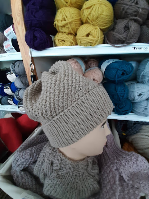 Asiakas näki putiikissani neulomani pipon, mutta halusi siihen vähän muutoksia. Hän halusi kaksinkertaisen resorin ja piposta muhkean, vähän taakse putoavan. Sellaisen tein.