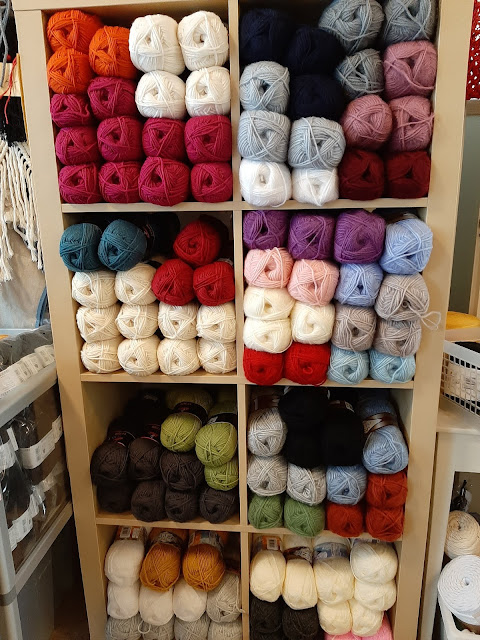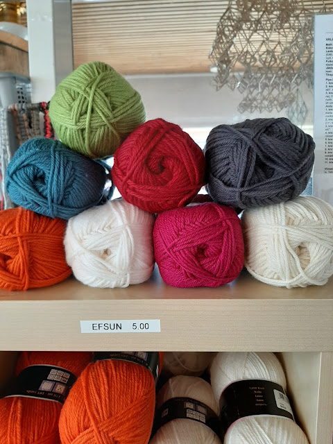 Ja sitten nuo lankatiedot. Tässä hyllyssä vasemmalla on tuota Efsun lankaa.