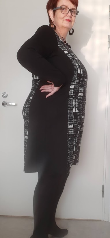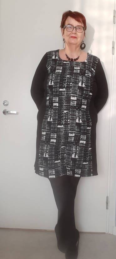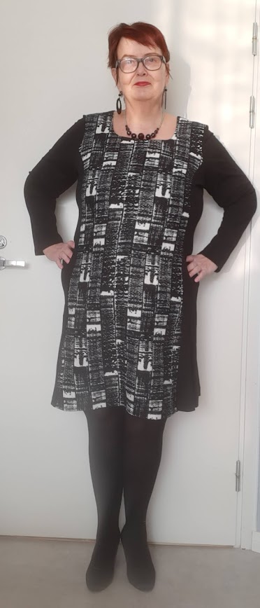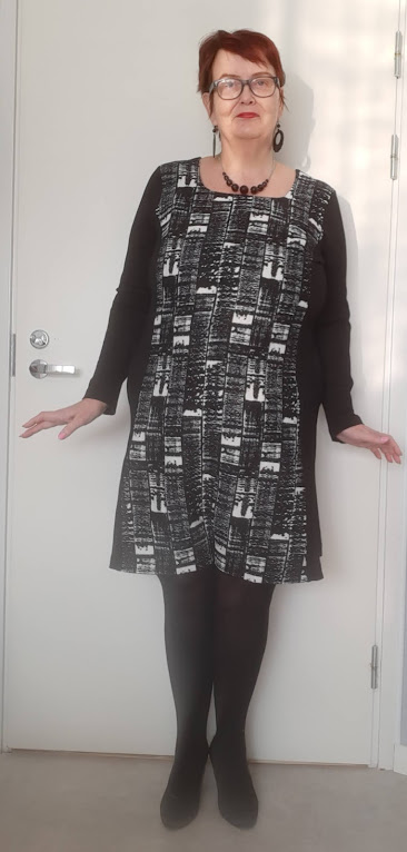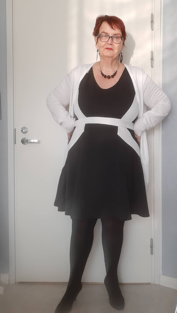 Ja kuten yleensäkin asutestauksissani, niin nytkin, vertailun vuoksi myös toisen tyyppinen mekko…