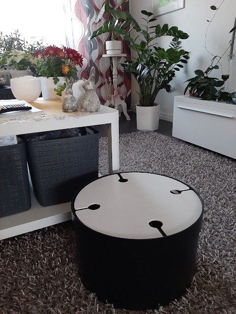 Ensin näytän isoimman niistä. Ostin muutama vuosi sitten käsityömessuilta tällaisen vanerikon, joka on kivan näköinen sisustuselementtikin.