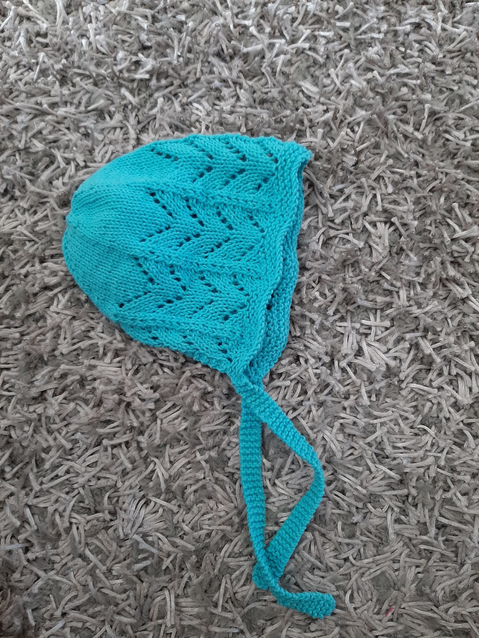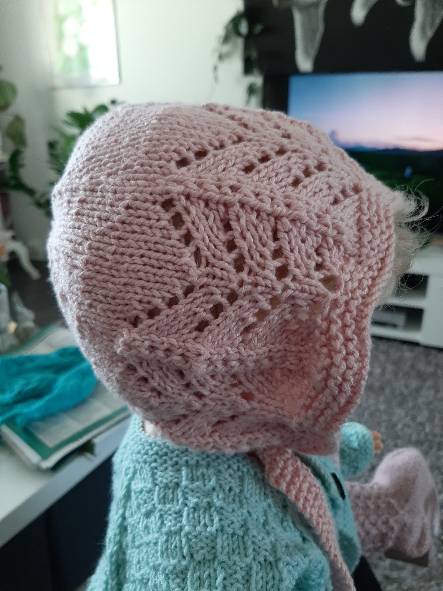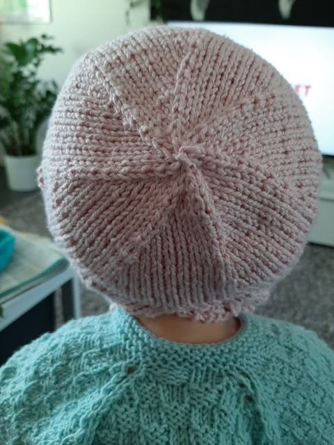 Mielestäni tämä myssy on kivan mallinen, siinä on niskassa tuollainen kolo. Vähän nuo nauhat mietityttää, kun minulla on sellainen käsitys, että turvallisuussyistä lasten vaatteissa ei saisi olla nauhoja, olenko oikeassa?
