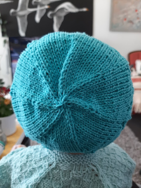 Lankaa kului 28 g. Tässä tulee taas ilmi mun yksi tapa: kun löydän kivan ohjeen ja olen sen vaivalla oppinut, teen samalla mallilla monta. Tämän myssyn kanssa sain kulumaan vain yhden illan, joten heti kokeilemaan toista lankaa. Siihen päti aivan sama ohje ja samat puikot. Tässä ihanassa langassa on mukana silkkiä ja siinä on puikkosuositus nro 4, mutta minä siis neuloin edelleen noilla 2,5 pyöröillä.