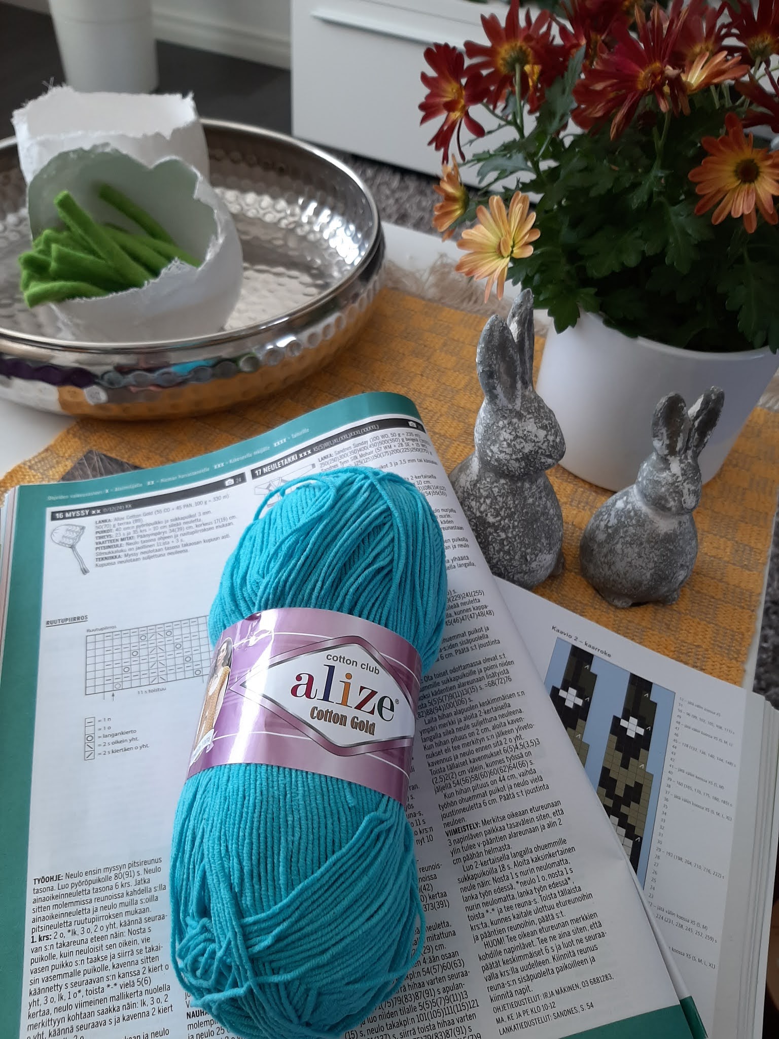 Taas kävi niin kuin yleensäkin: talven kudon villalankoja, mutta sitten tulee stoppi ja haluan siirtyä puuvillaisiin lankoihin ja enemmänkin virkkaukseen. Nyt, kun yhdeksän islantilaistyyppistä villapaitaa on tehtynä, olen saanut niistä ”tarpeekseni”. Tilaisin kauppaan paljon meille uusia puuvillalankoja ja nyt sormet syyhyää päästä niitä kokeilemaan ja tekemään jotain malliksi. Selvästi huomasi tällä viikolla, että asiakkaatkin olivat siirtyneet kesäkäsitöihin, sillä puuvillalankoja kysyttiin…