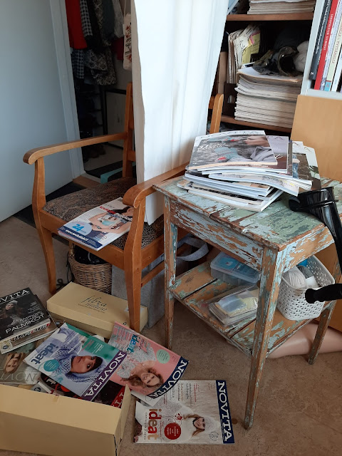 Sitten ohjeen etsintään! Selasin kaikki uudemmat Novita-lehdet löytämättä kovinkaan montaa kivaa, tarpeeksi pienen käsityön ohjetta. En halua tehdä mitään tyyliin itselleni virkattua puseroa – niitä on jo tarpeeksi monta keskeneräisissä töissä! Enkä halua uusia lankoja käyttää omiin töihini, ihan vaan malliksi…