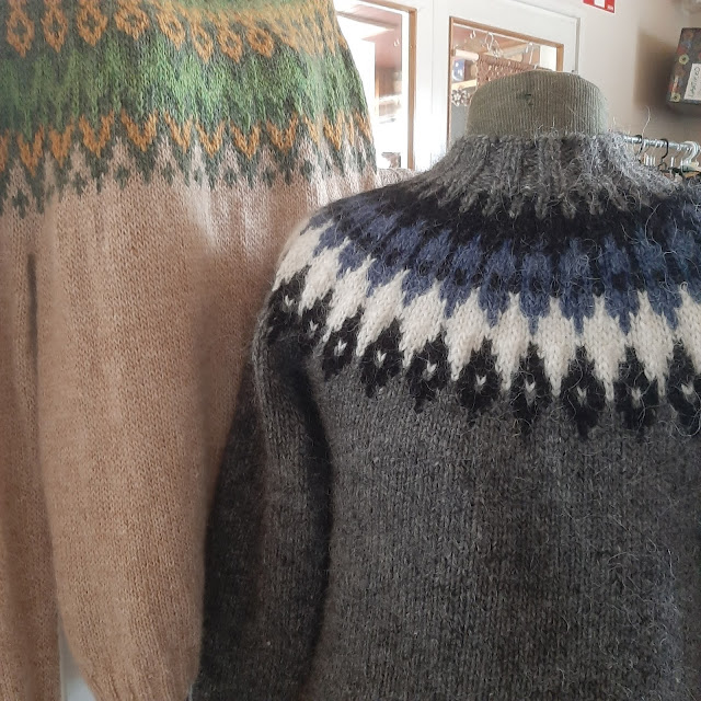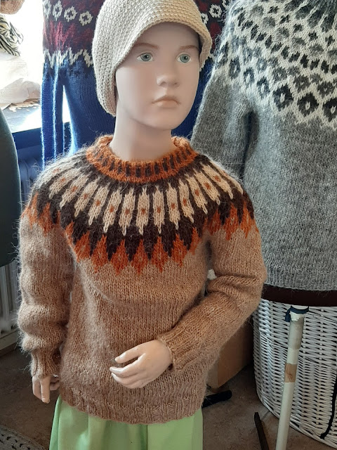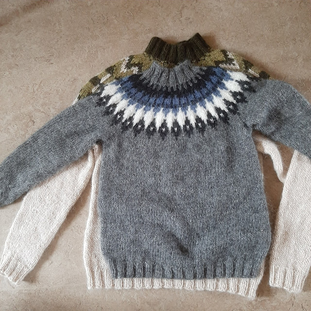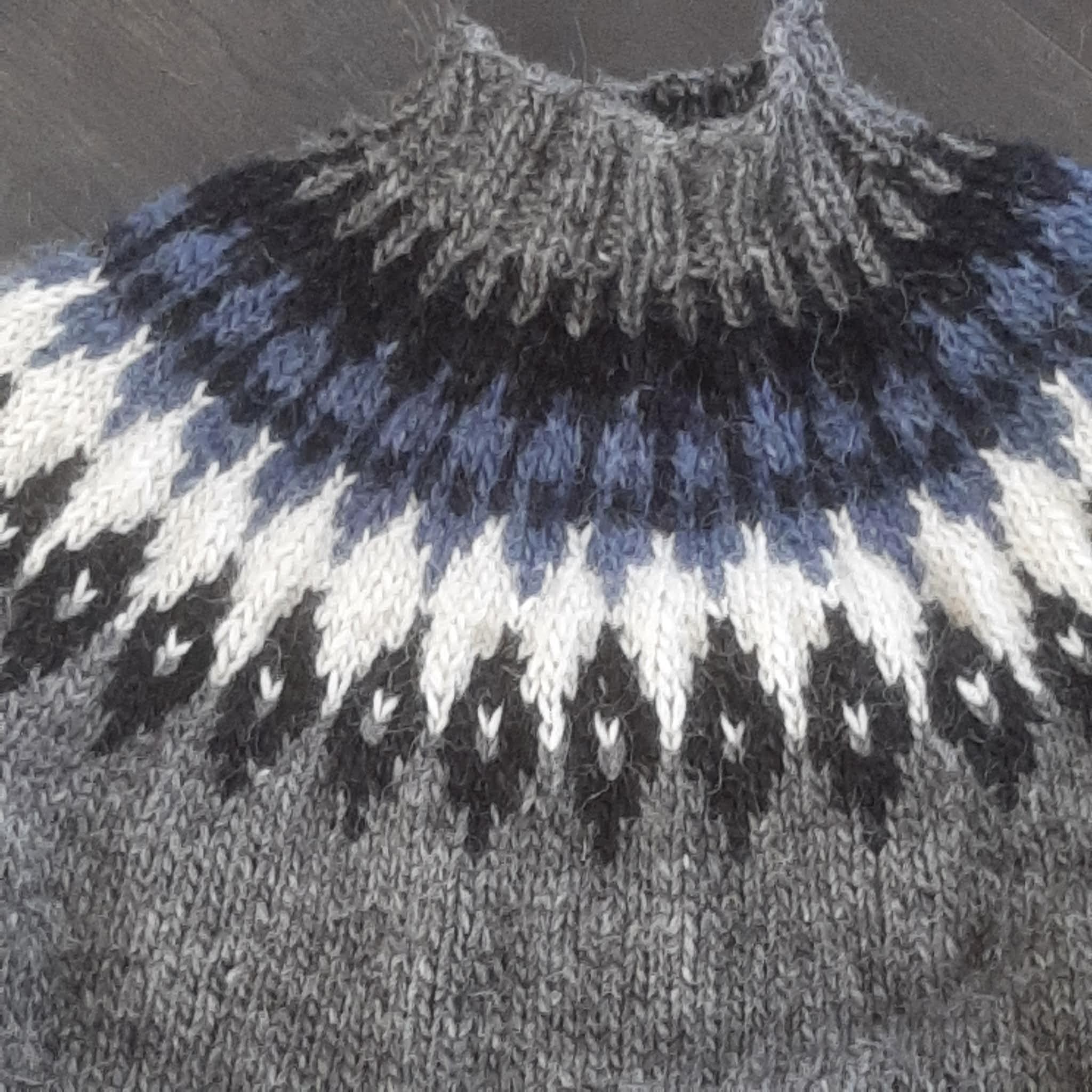 Niin ja kerrompa vielä senkin, vaikka olen jo aiemmin näyttänytkin, kun tein samalla mallilla ja samoilla silmukkamäärillä – MUTTA LETTLOPISTA – tämän mallin. Siitä tuli lapsen pusero