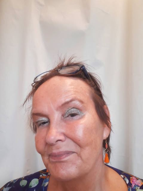 Suostun olemaan juuri minä, heikkoine taitoineni. Lisään kotona tehtävää harjoittelua, mutta onkohan se sama, jos tuolle aviomiehelleni harjoittelen silmämeikkiä tekemään? Tänään vielä ihastelin värikkäitä luomivärejä, kulmakarvat jäi mittailematta… Ensin laitoin keltaista, sitten päälle vihreää ja lopuksi vielä violettia luomiväriä. Ja jossain niistä oli helmiäistäkin – ihan nounou vanhalle iholle. Mut ei haittaa!