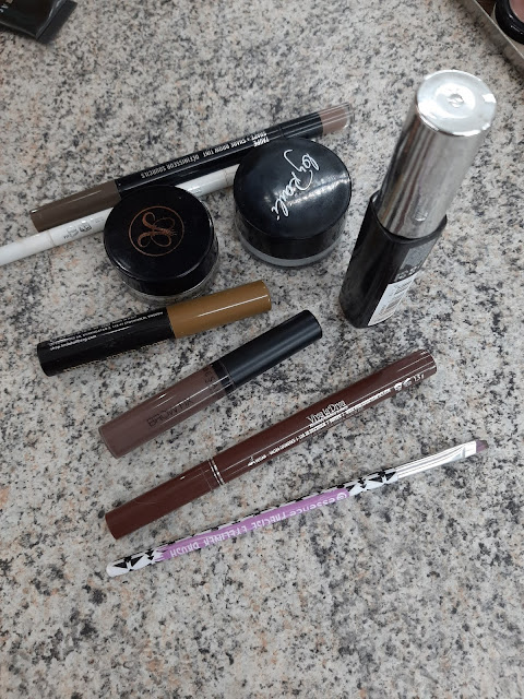 Tämän opittuamme tutkailimme erilaisia välineitä kulmakarvojen piirtämiseen. Tällaiset oli opettajalla mukana