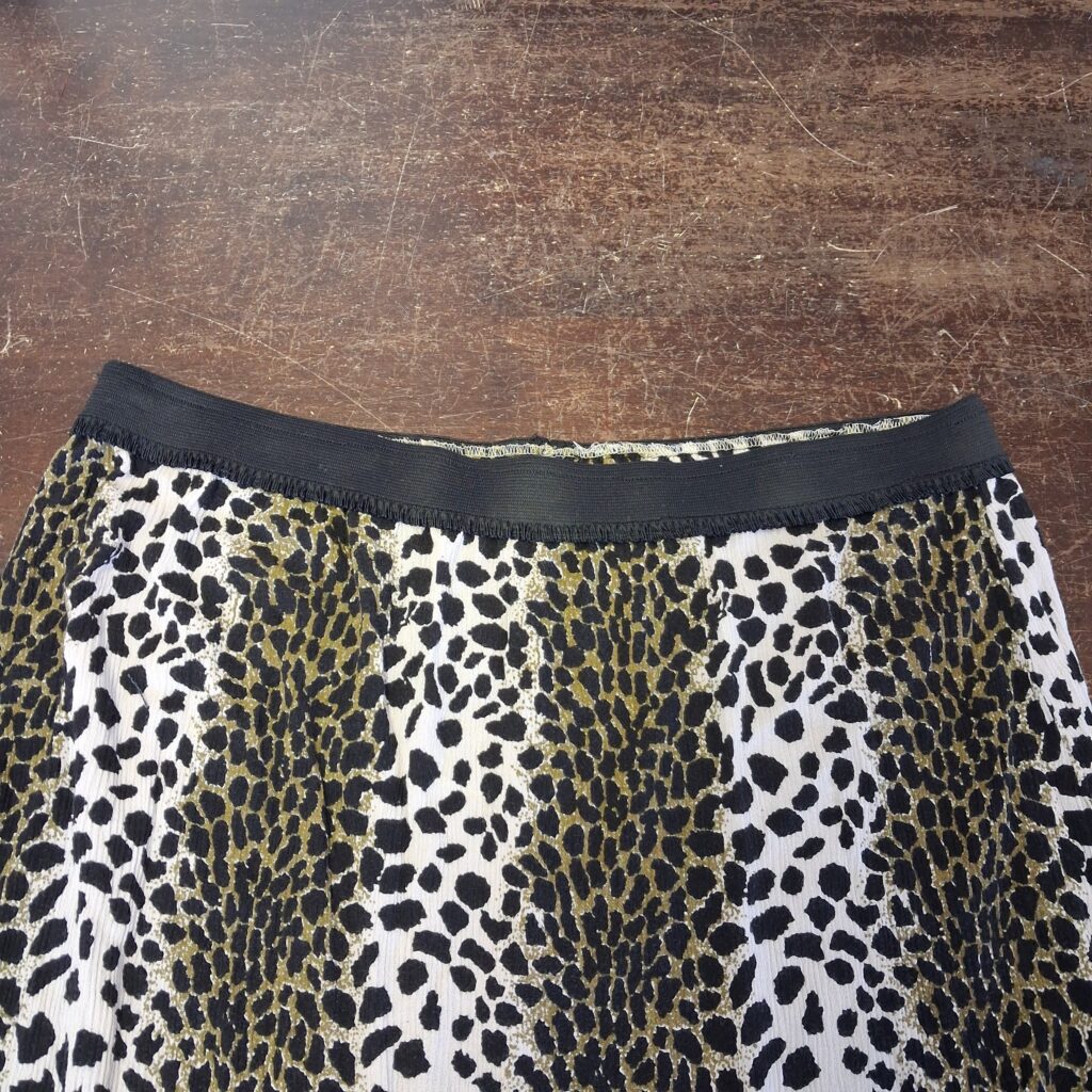 Koska pituus jäisi aika lyhyeksi, valitsin vyötärölle tuollaisen 80-luvulla paljon käytetyn kuminauhan. Vyötärö on tällaisenaan oikein mukava ja hame kiva käyttää. Mutta.